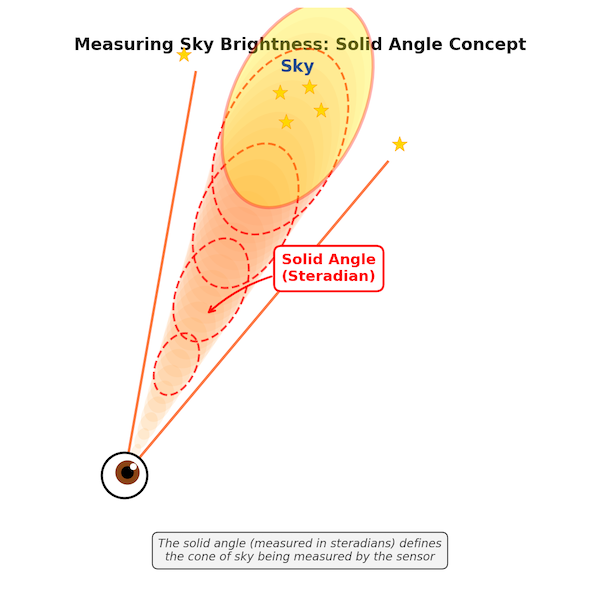 This measures the actual physical brightness – the amount of light energy hitting your eye from a patch of sky. Unlike magnitudes: